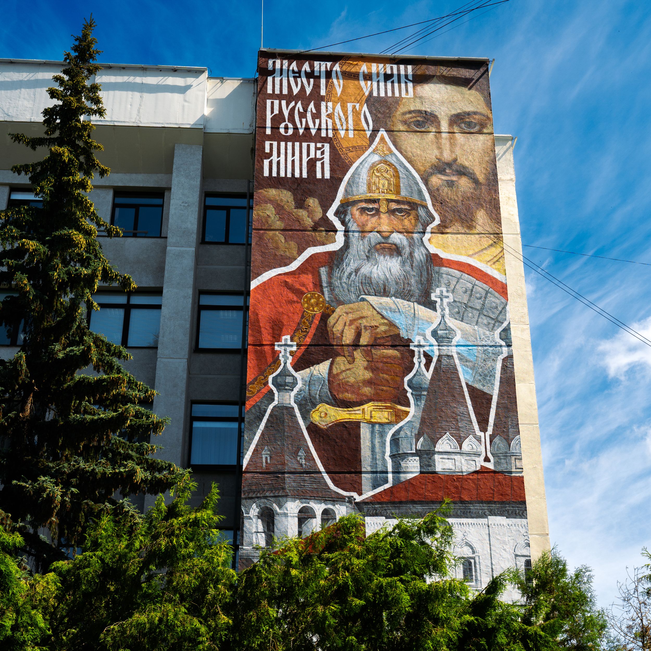 На здании Вологодской городской думы художник Олег Иванов изобразил богатыря с ликом Иисуса Христа на фоне русских церквей. Он создал поистине монументальный образ, который рождает различные ассоциации у зрителей.