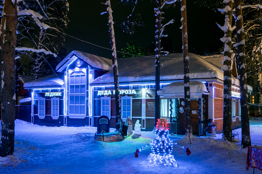 Ледник Деда Мороза в его северном царстве — это удивительное место, где зимняя магия природы встречается с волшебством самого волшебника. В это время года вся территория его вотчины укрыта серебристым снежным покрывалом, а ледяные скульптуры, созданные из чистейшего снега и льда, становятся настоящими произведениями искусства, отражая сказочные образы и традиции северного фольклора.
