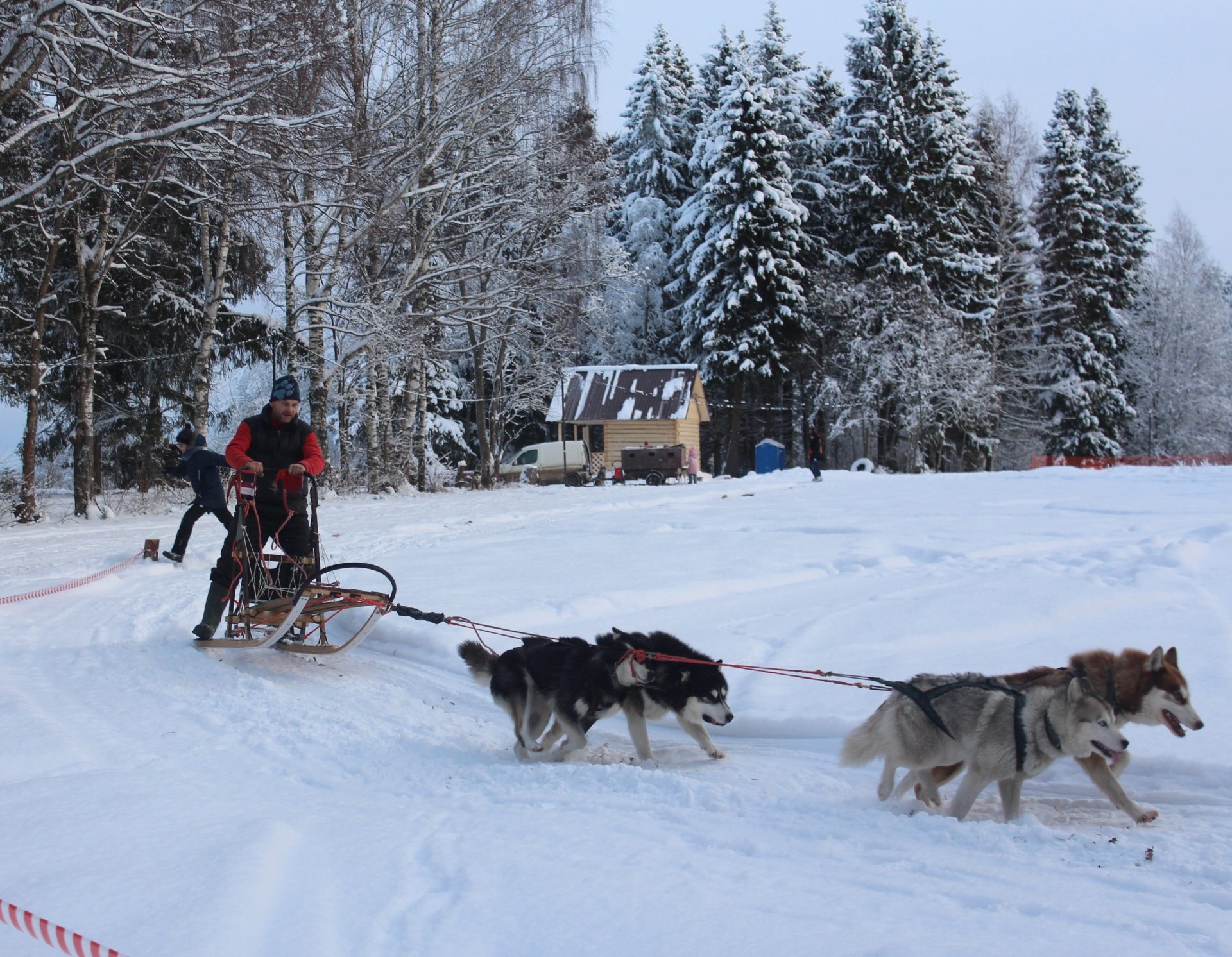 Пункт проката инвентаря — можно взять лыжи, ватрушки и другое снаряжение.